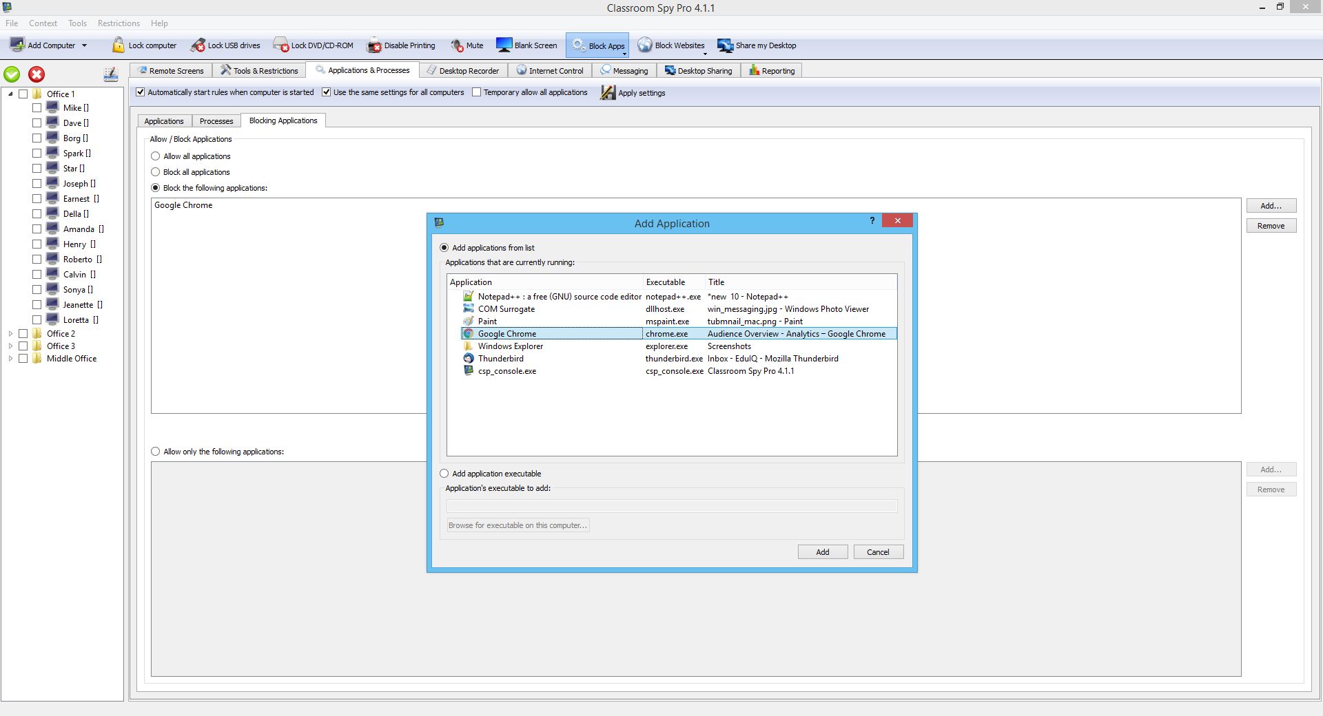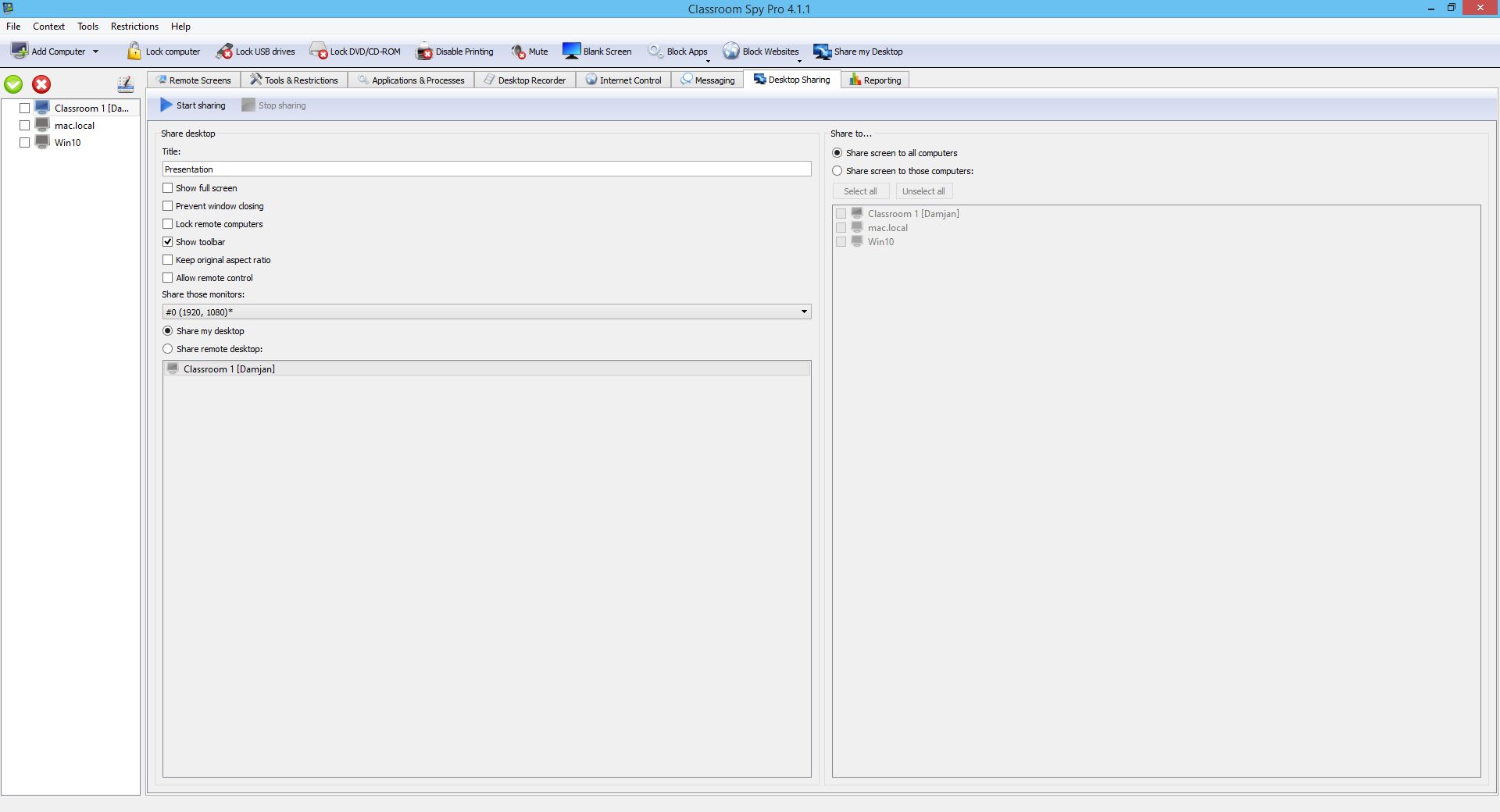 The application allows you to see what is currently displayed on a student computer monitor. This way you can quickly discover if your students are doing the tasks they are assigned.